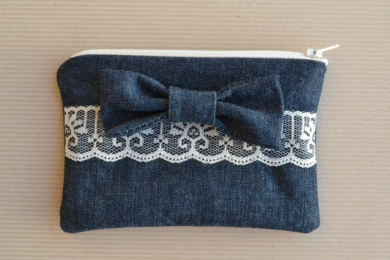 *You may notice mine is just a little different than hers. I decided to lay my ribbon down horizontally rather than vertically because it was not the same on both sides and it looked better this way! It is also made for a left handed person (the zipper zips from the right side). This happened by accident :)